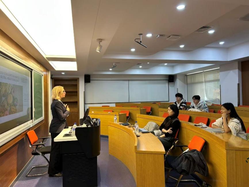 20251023日,意大利圣心大学教授、消费者行为学系主任Guendalina Graffigna和国际处周倩茹老师到访我校,为我院学生举办了一场学术报告,并开展了“吉林大学——圣心大学3+2本硕联合培养项目”的宣讲。心理学系副系主任金庆英副教授及心理学专业本科生参加了本次活动。