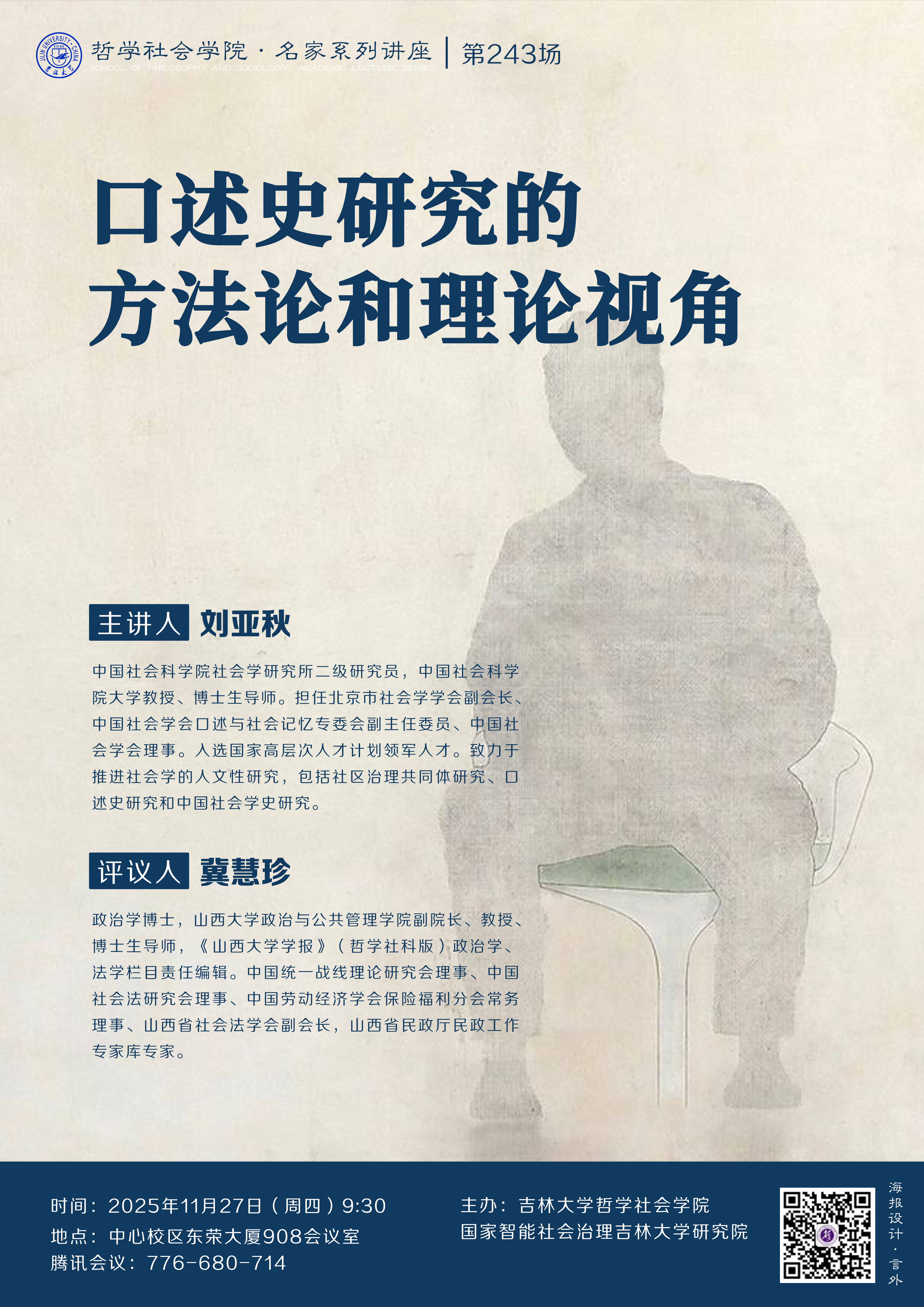 【色情直播 名家系列讲座第243场】刘亚秋、冀慧珍:口述史研究的方法论和理论视角