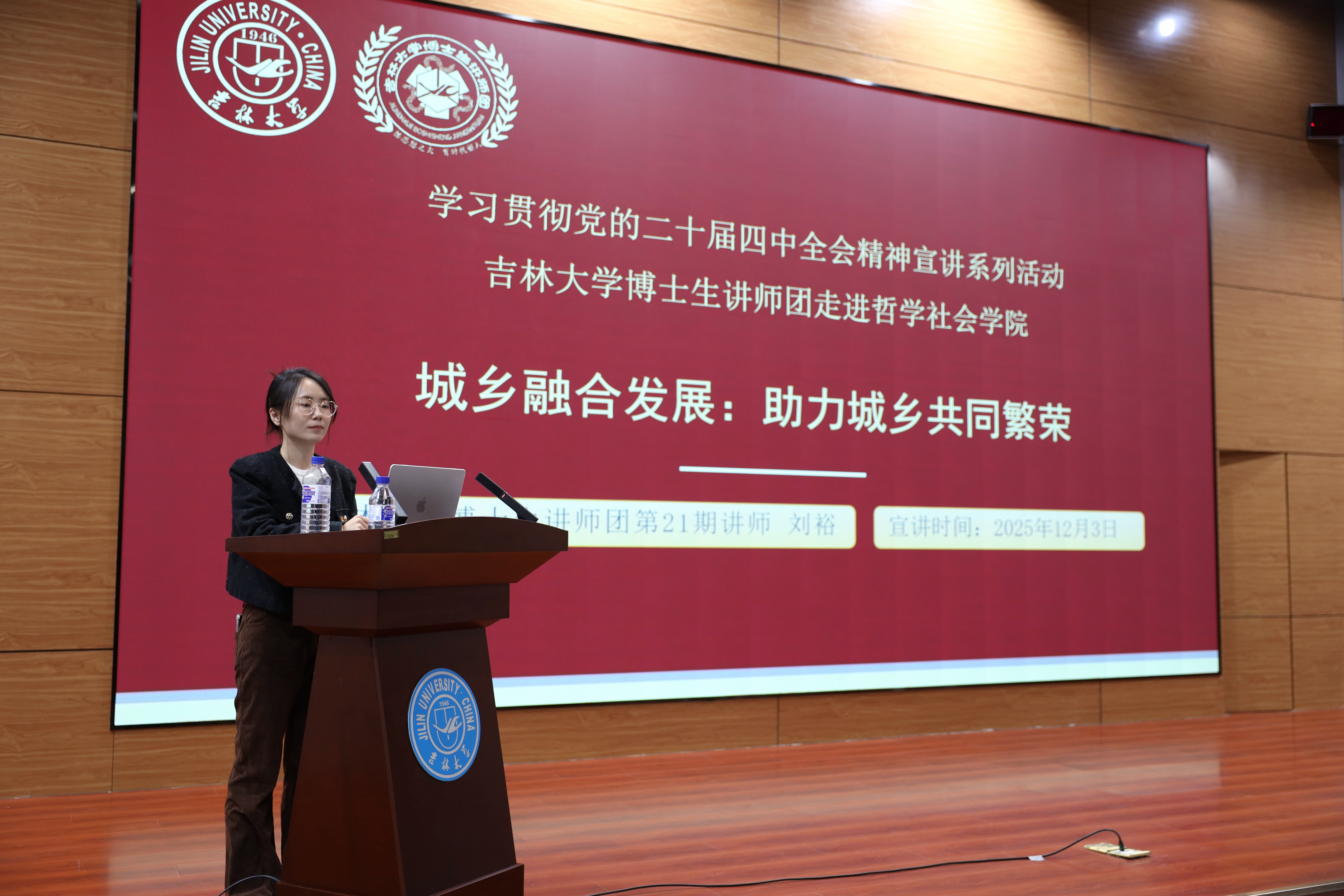 作为在社会学领域深耕的青年学生,刘裕以“城乡融合发展:助力城乡共同繁荣”为主题,深入阐释了党的二十届四中全会关于农业农村现代化、乡村振兴战略的具体部署。她围绕“城乡融合为何成为必答题”“城乡融合政策的历史演进”“城乡融合的实现路径”“青年担当与吉林实践”以及“2035年未来图景”五个维度,全面解读了城乡融合在中国式现代化进程中的重要战略意义。